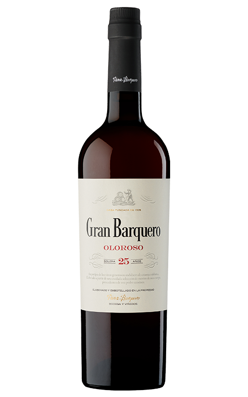 Gran Barquero Oloroso envejece durante más de 10 años en botas de roble americano, bajo crianza oxidativa. Este largo proceso de maduración aporta una evolución lenta y compleja, con desarrollo de notas de frutos secos, maderas nobles y especias dulces. La concentración se ve acompañada de un equilibrio natural entre volumen y acidez.